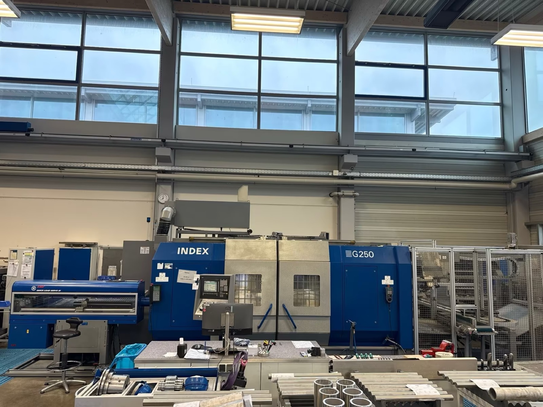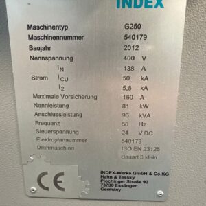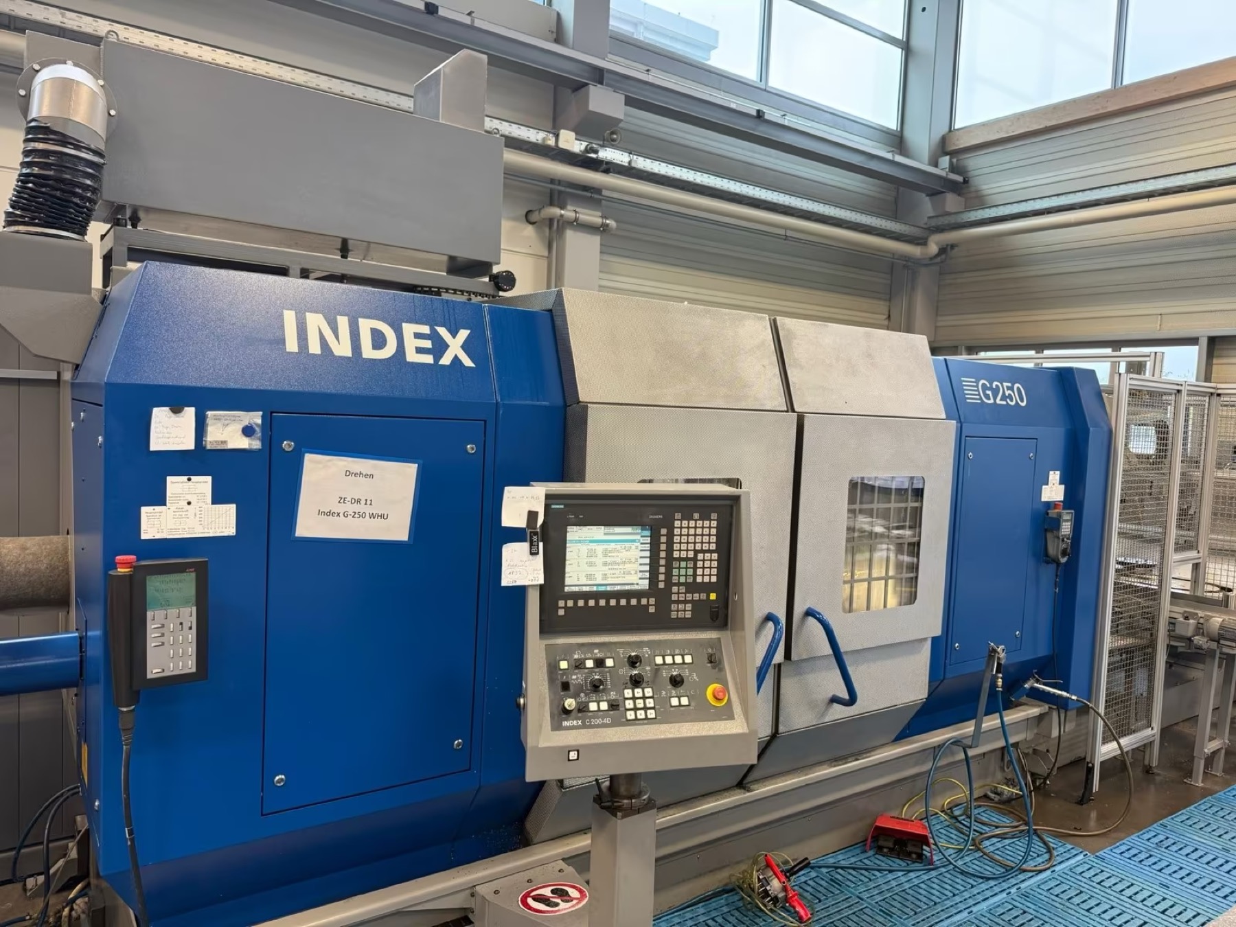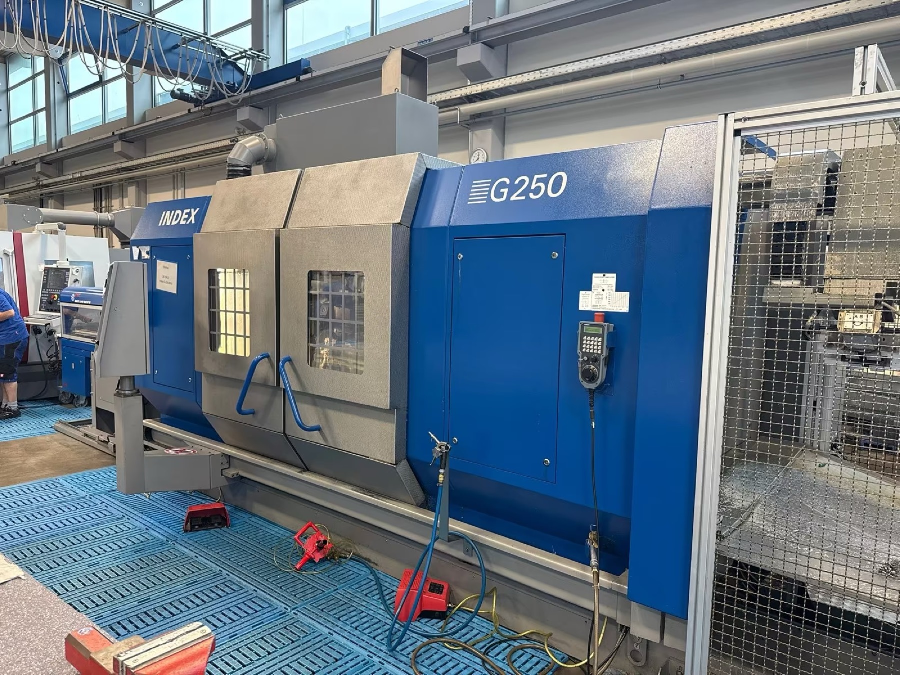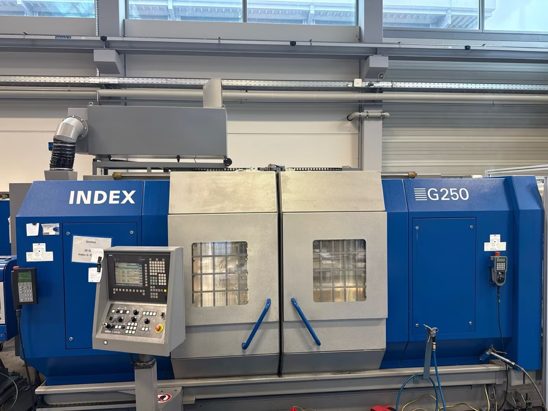 CNC-Drehzentrum des Herstellers INDEX. Die G250 wurde 2012 gefertigt und befindet sich in einem sehr gepflegten Zustand. Die Maschine ist für anspruchsvolle Dreh- und Fräsbearbeitungen konzipiert und eignet sich ideal für komplexe Werkstücke in Einzel- und Serienfertigung.